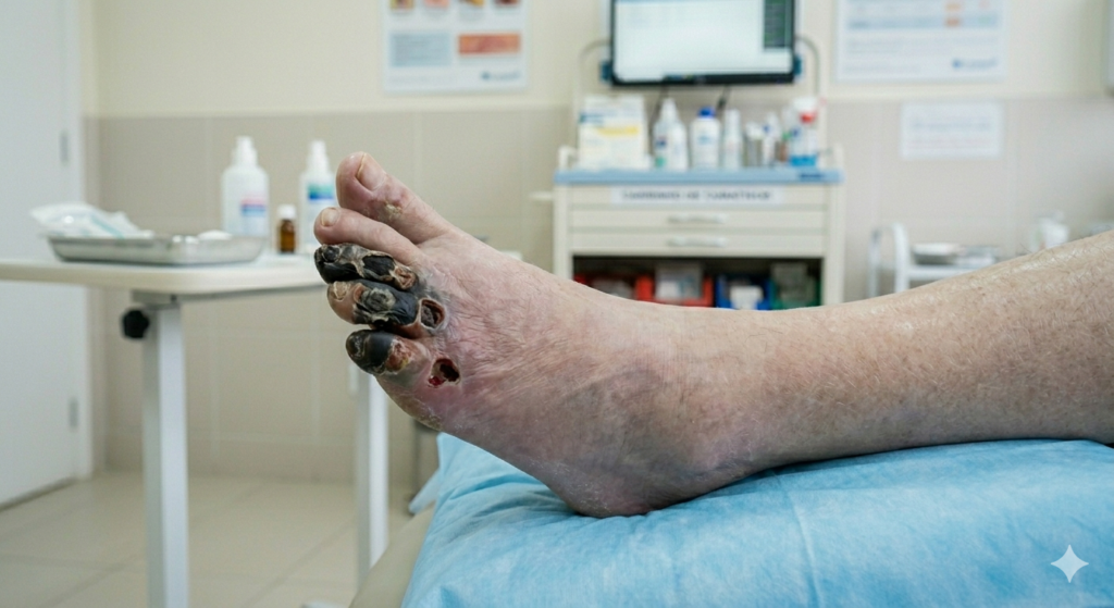 - Localização: dedos, dorso do pé e calcâneo